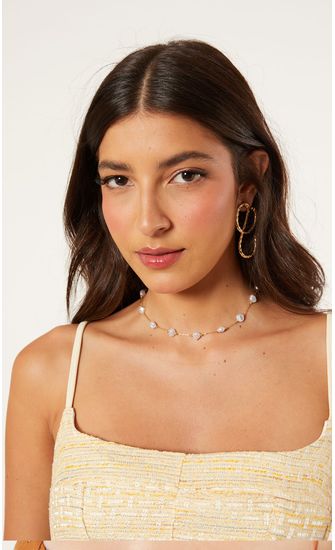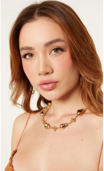 Colar Courino Formas Textura Duo Colors - Niquel Com Dourado
