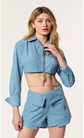 Chemise Cropped Denin Strass - Jeans