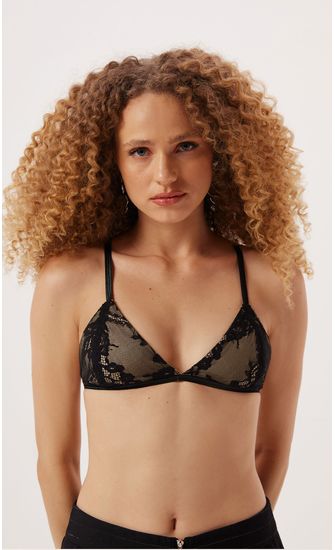 Top Renda Chantilly Costas Nadador - Preto