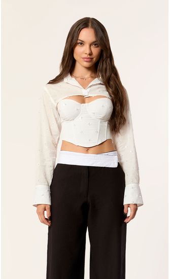 Cropped Linho Detalhe Metais Frente - Caipirinha