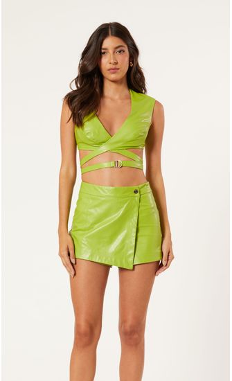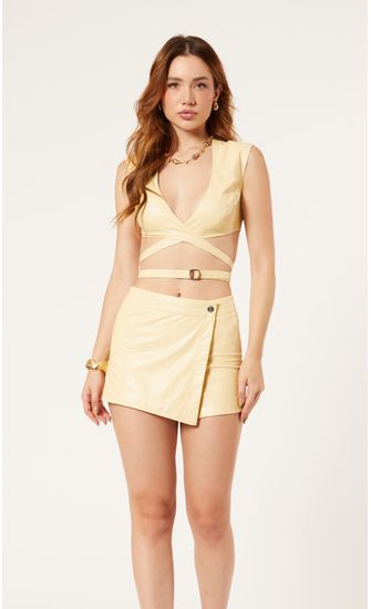 Cropped Colete Faux Leather Amarração - Pina Colada