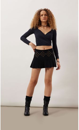 Mini Saia em Malha Estruturada Mesh Floral - Preto