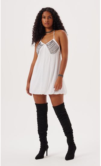 Mini Vestido em Malha Balonê Aplicação Canutilhos - Off
