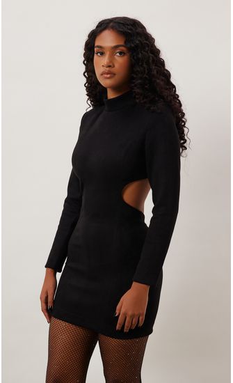 Vestido em Chamois Gola Rolê Decote Costas - Preto