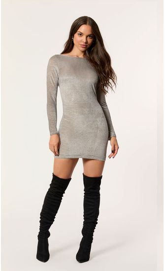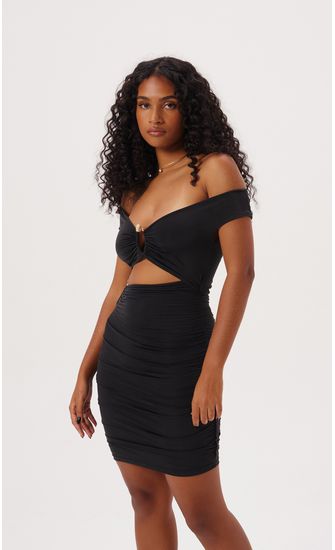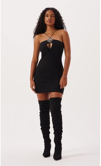 Vestido Mini Malha Fria Argola Pedras - Preto