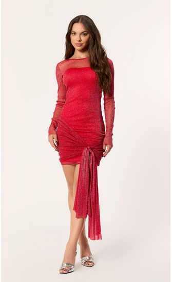 Vestido Faux Chamois Flor Cristal - Vermelho